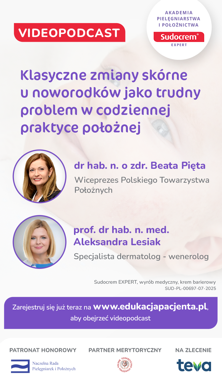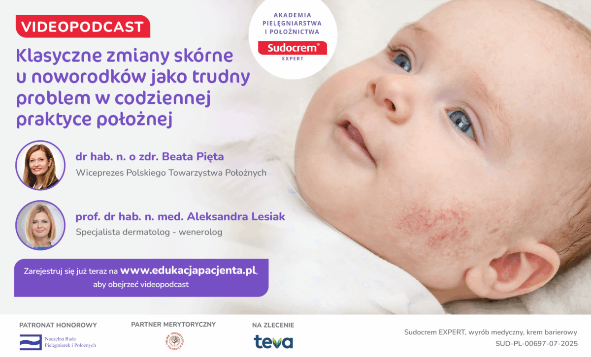 Bezpłatny videopodcast: „Klasyczne zmiany skórne u noworodków jako trudny problem w codziennej praktyce położnej”.