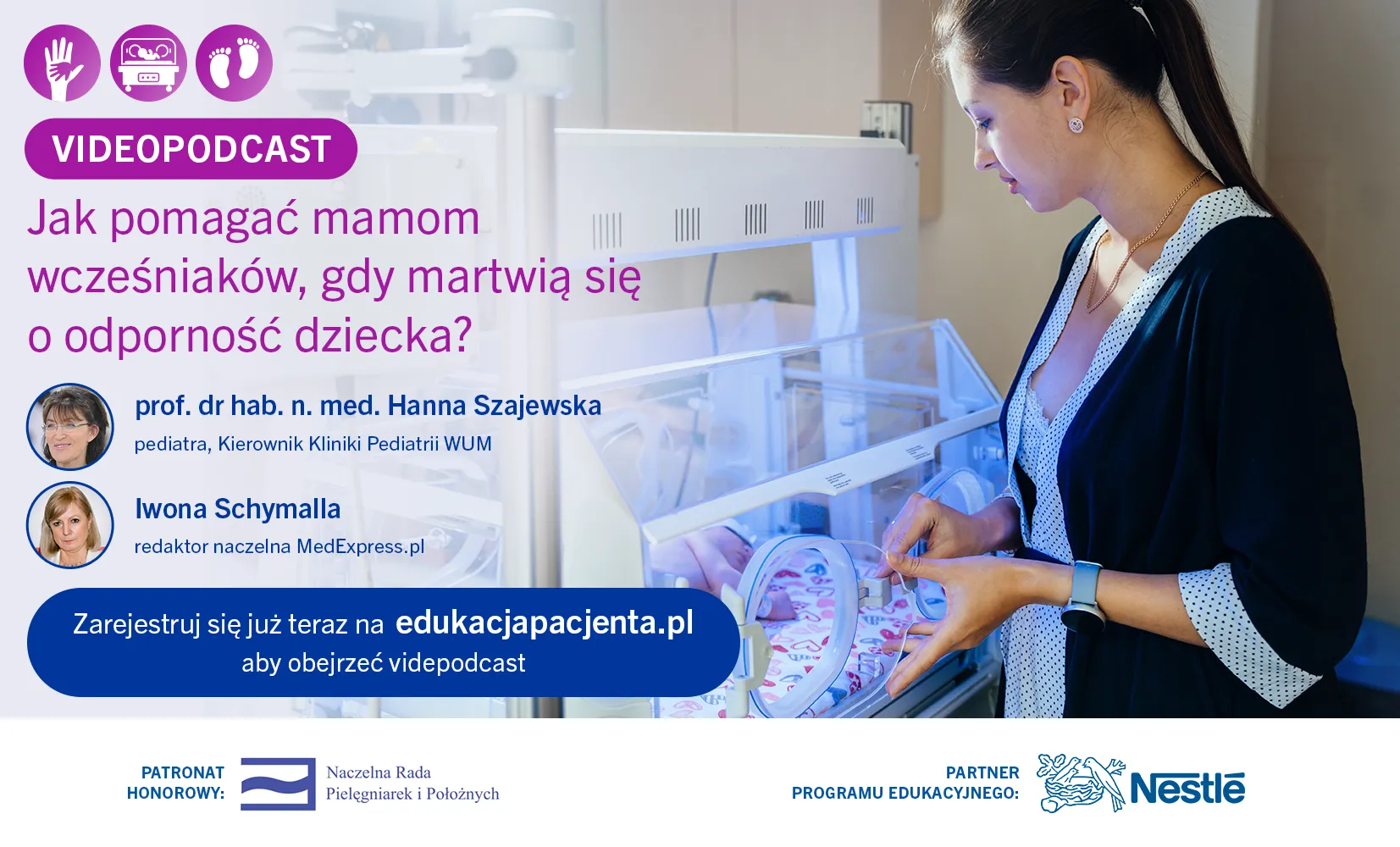 Bezpłatny videopodcast: „Jak pomagać mamom wcześniaków, gdy martwią się o odporność?”.